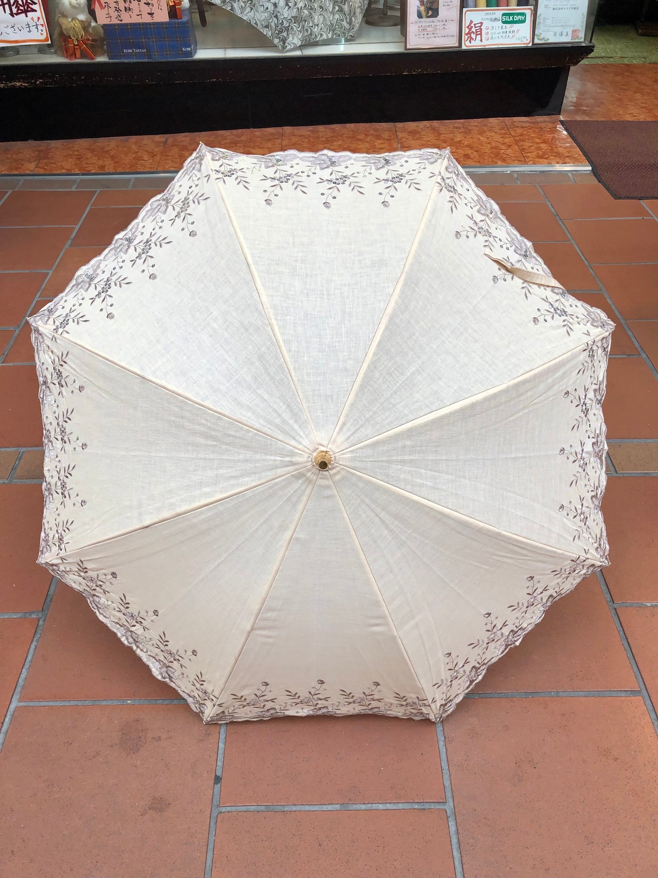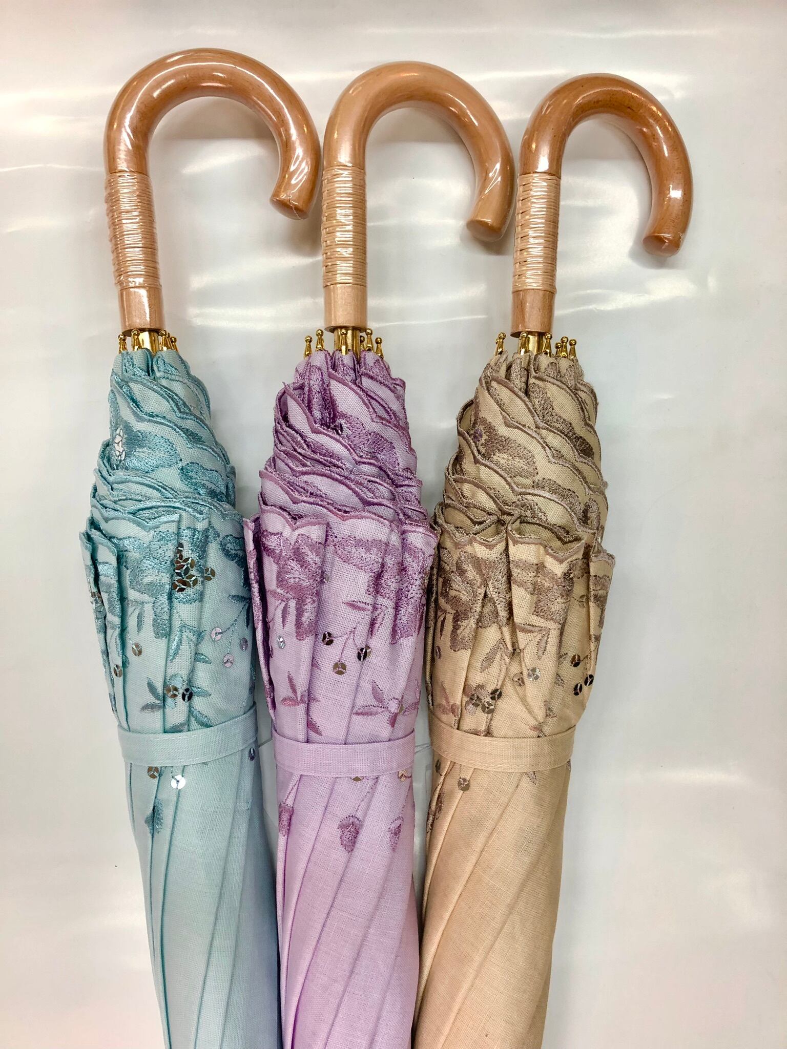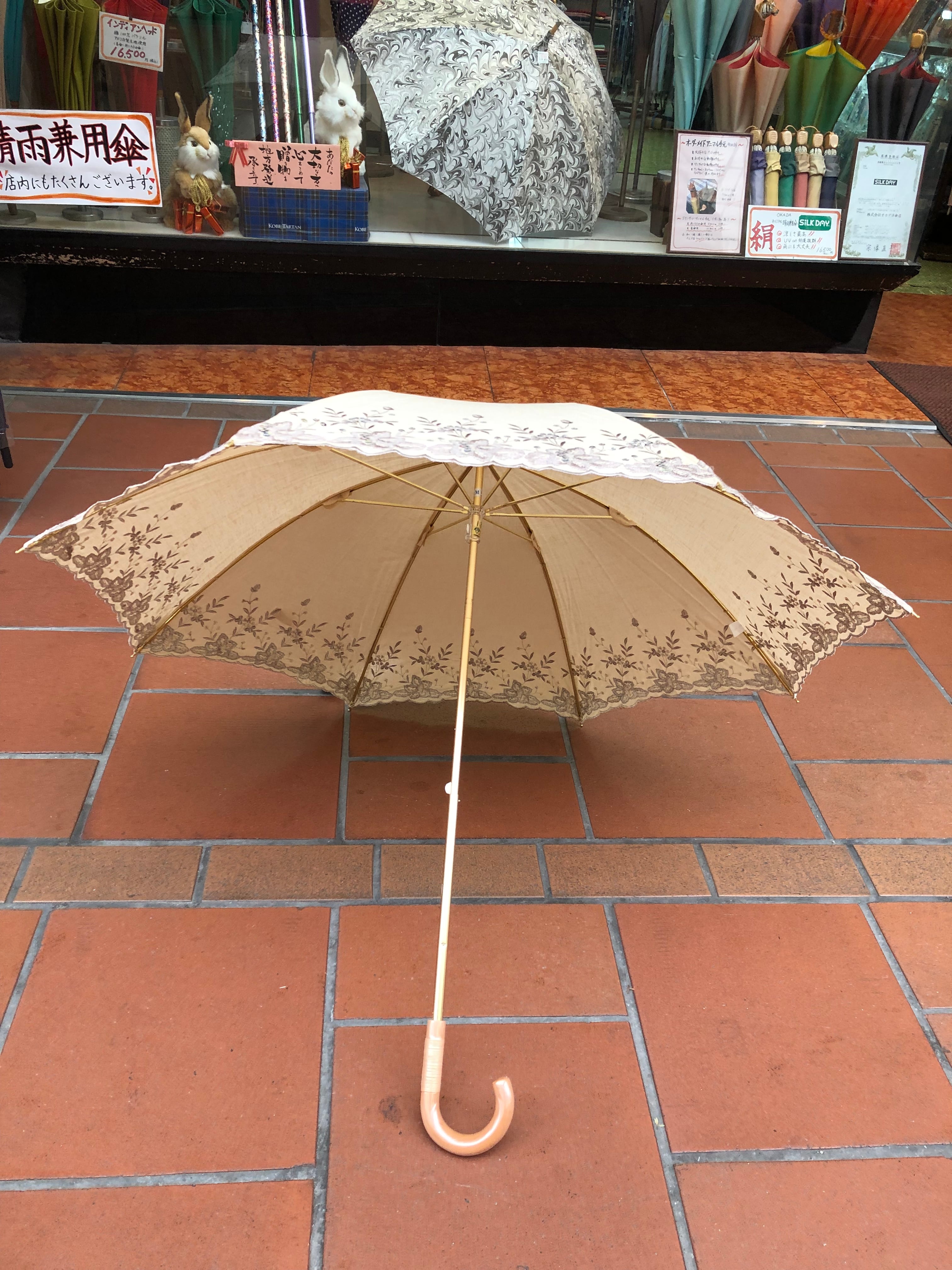 晴雨兼用傘【綿/ 麻 花刺繍 & スパンコール〈ベージュ〉】晴雨兼用 傘 日傘 UVカット プレゼント ギフト
