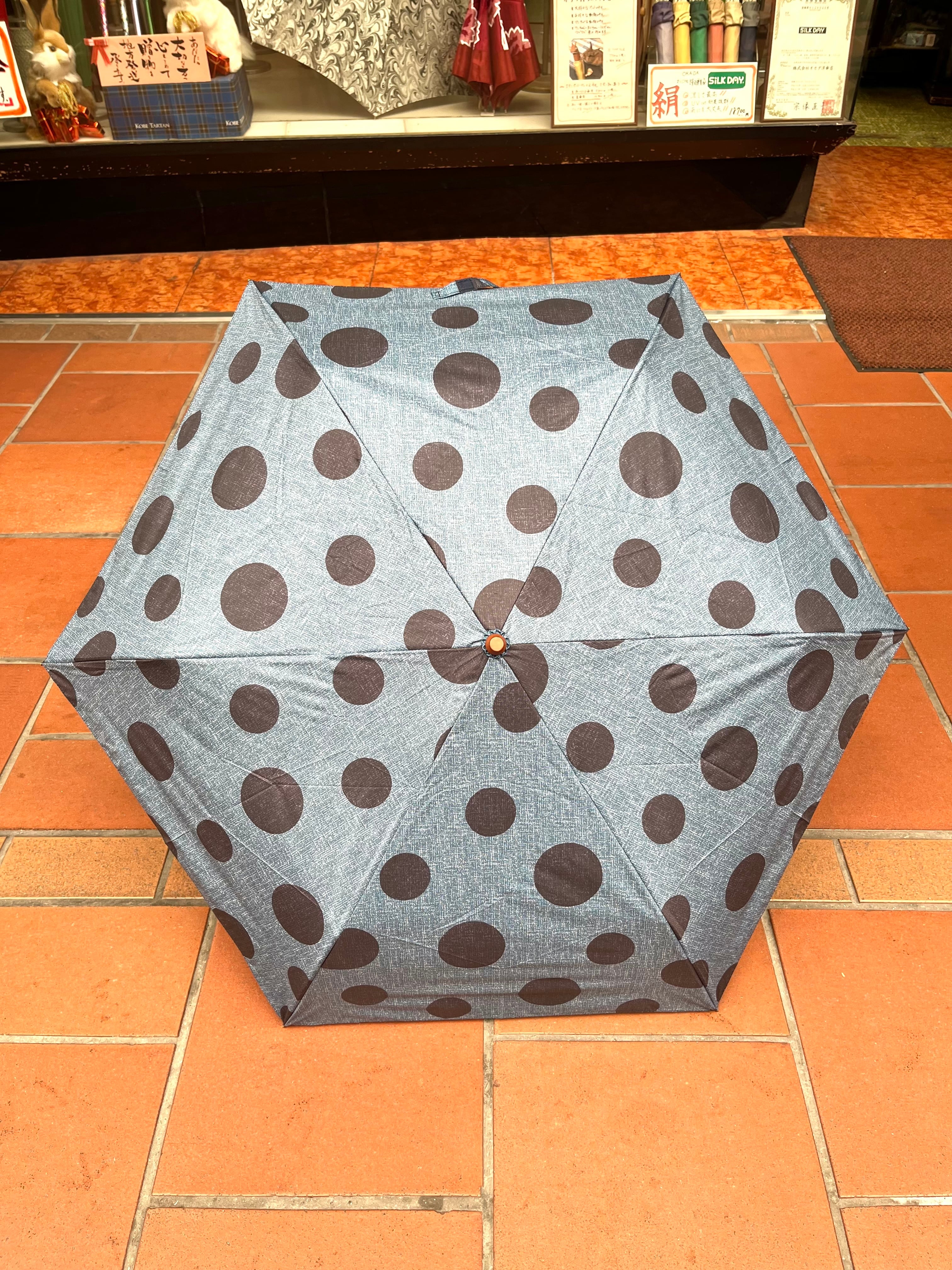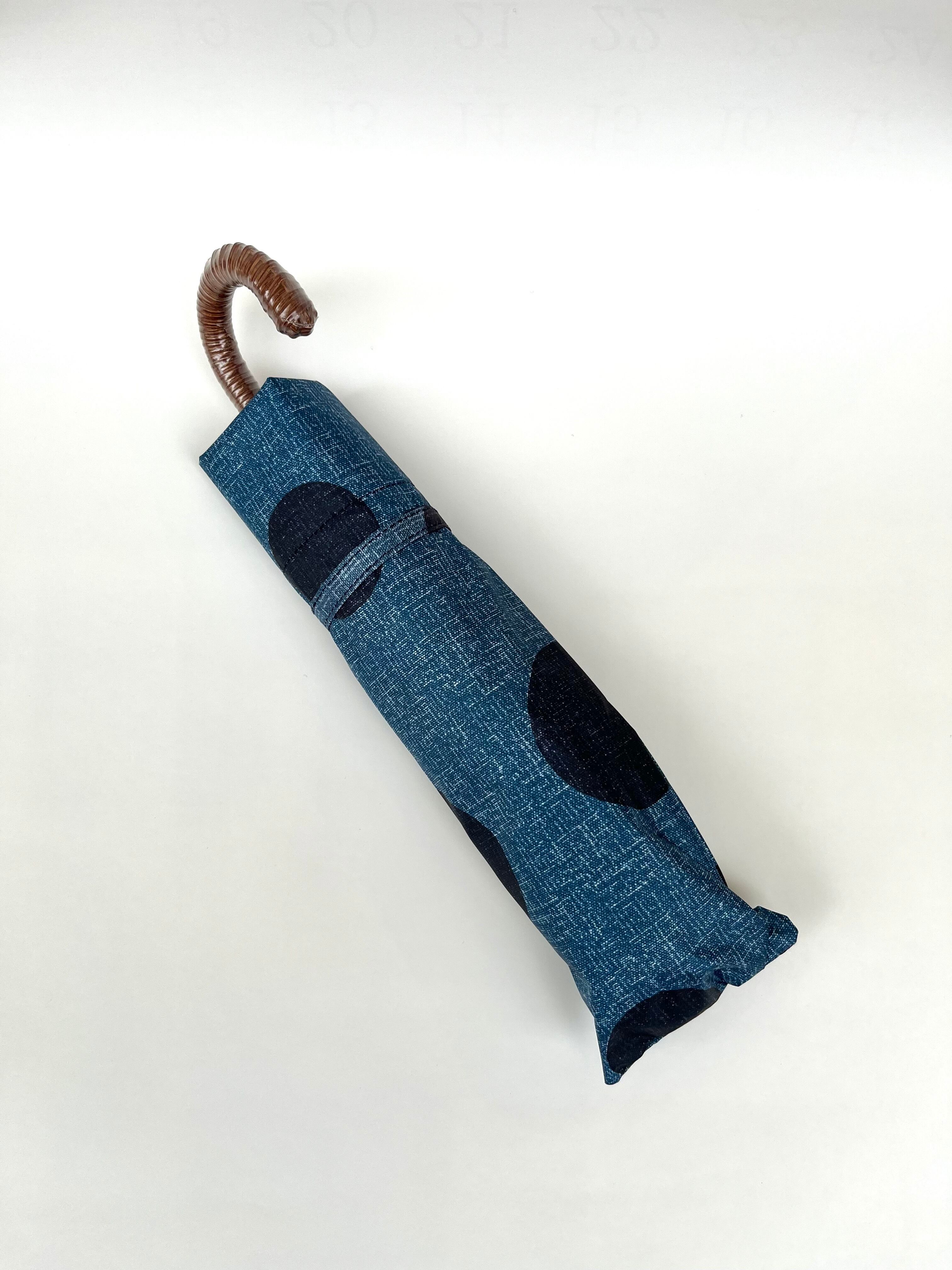 《ドット柄 晴雨兼用 折り畳み傘》 〈紺水玉〉 UVカット 遮光 遮熱 コンパクト 軽量 ギフト プレゼント お祝い 卒業 進学 就職