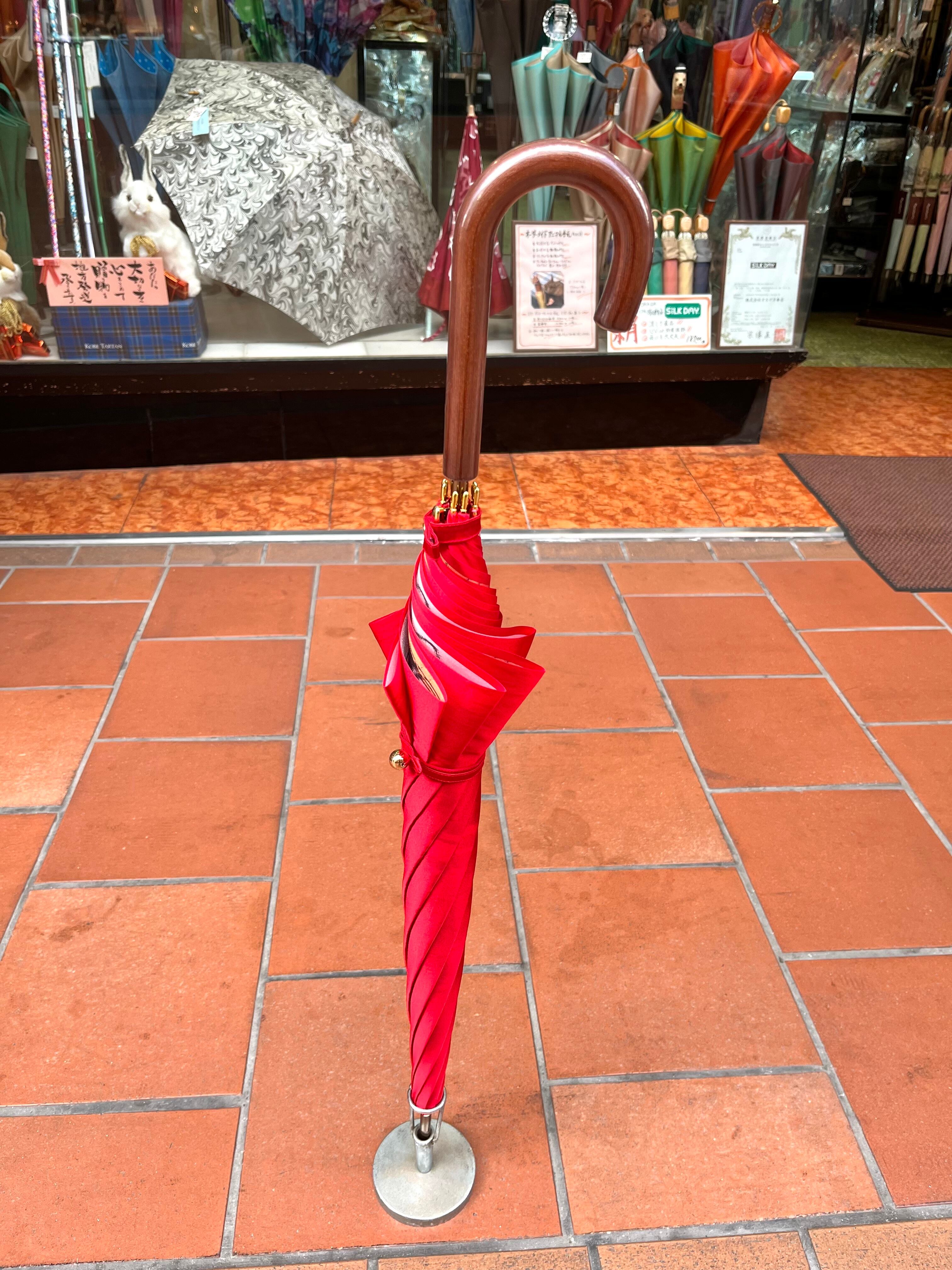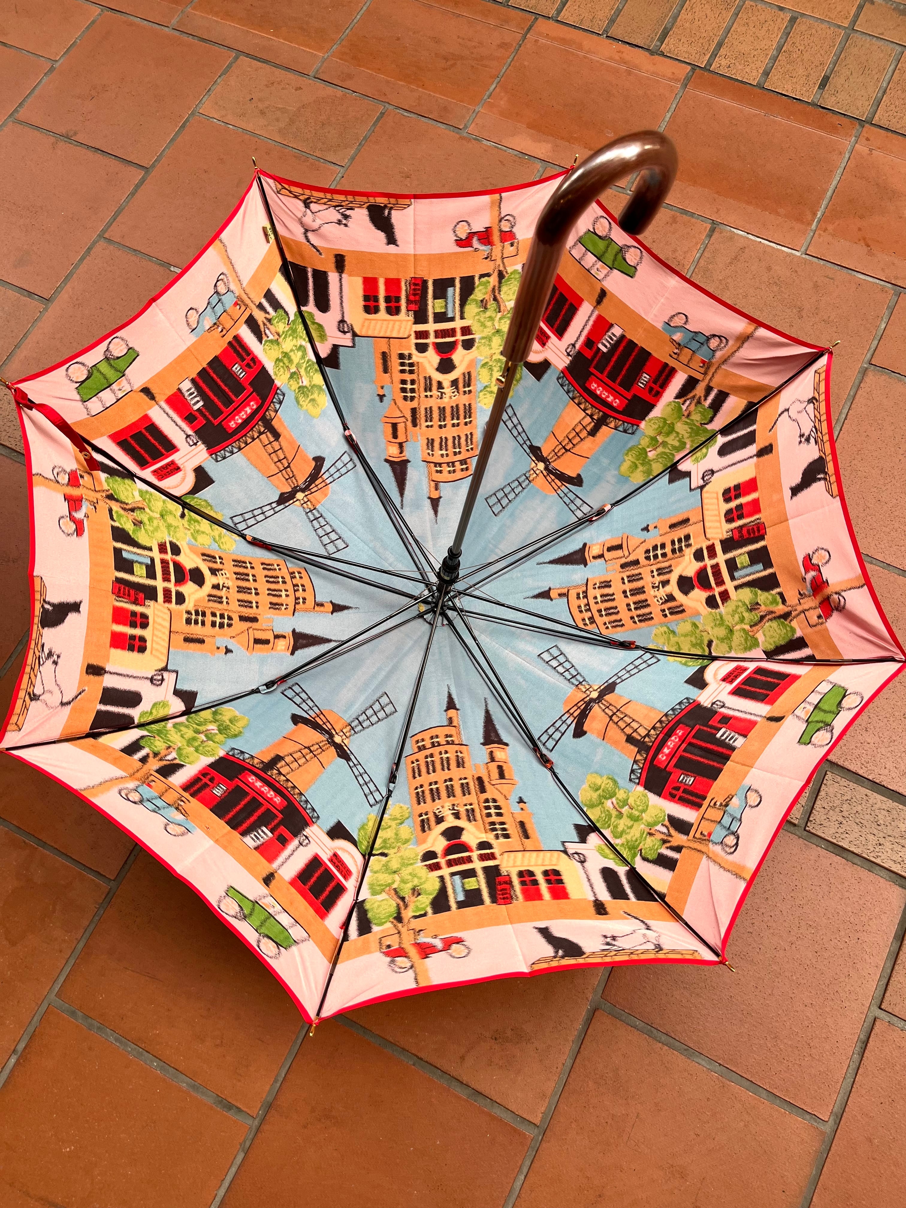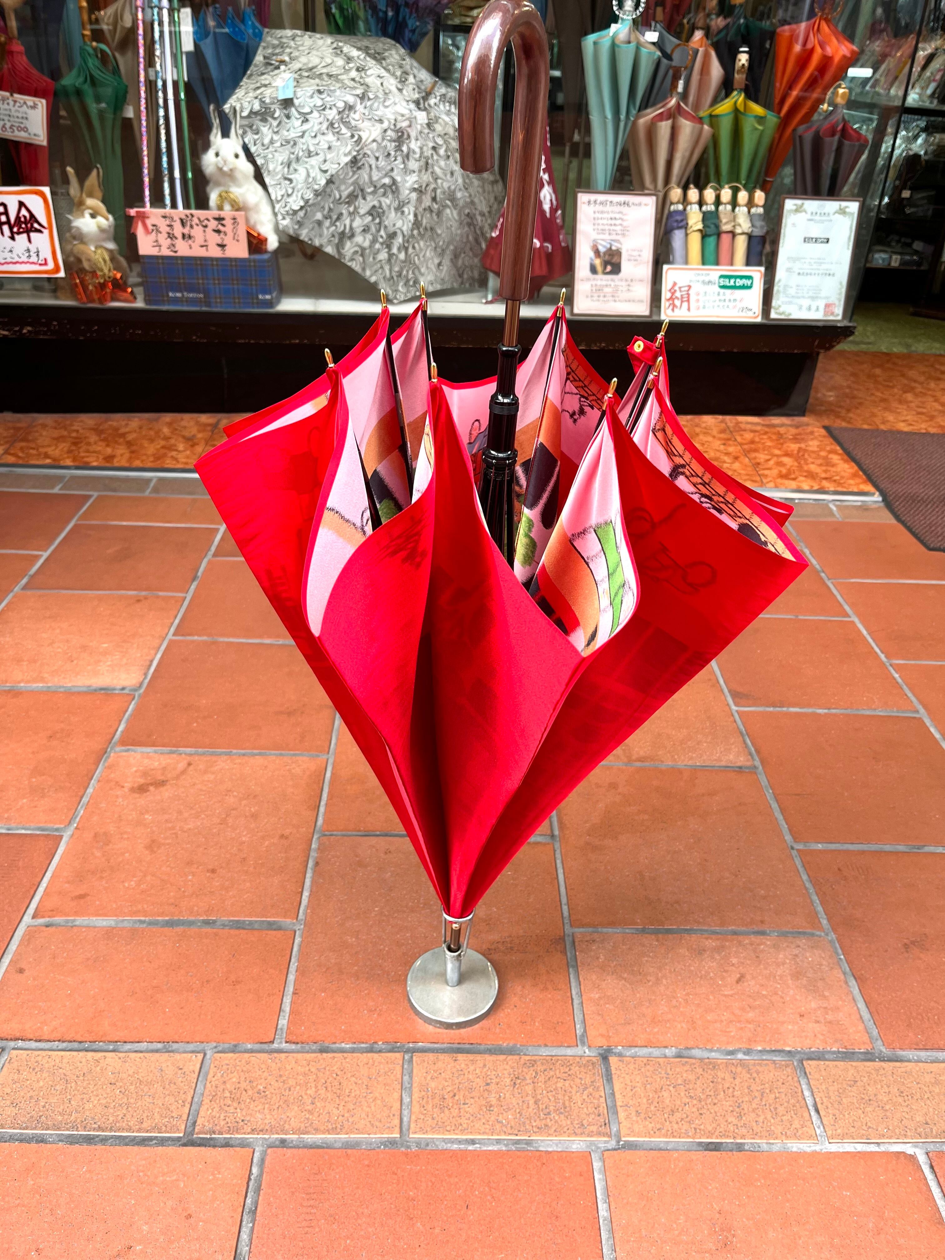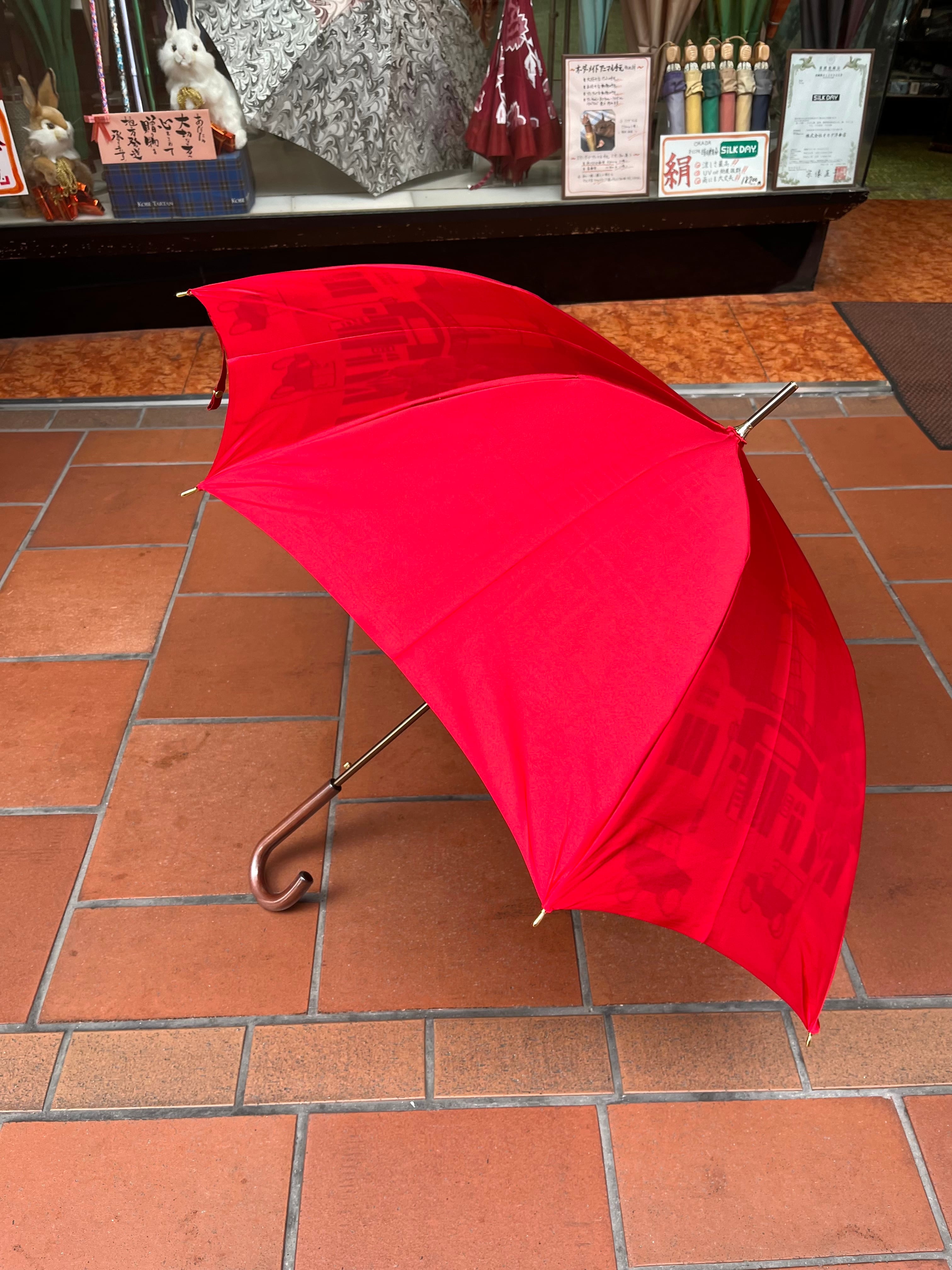 雨傘【ほぐし織オリジナル】《(表)赤/(裏)風車と城》