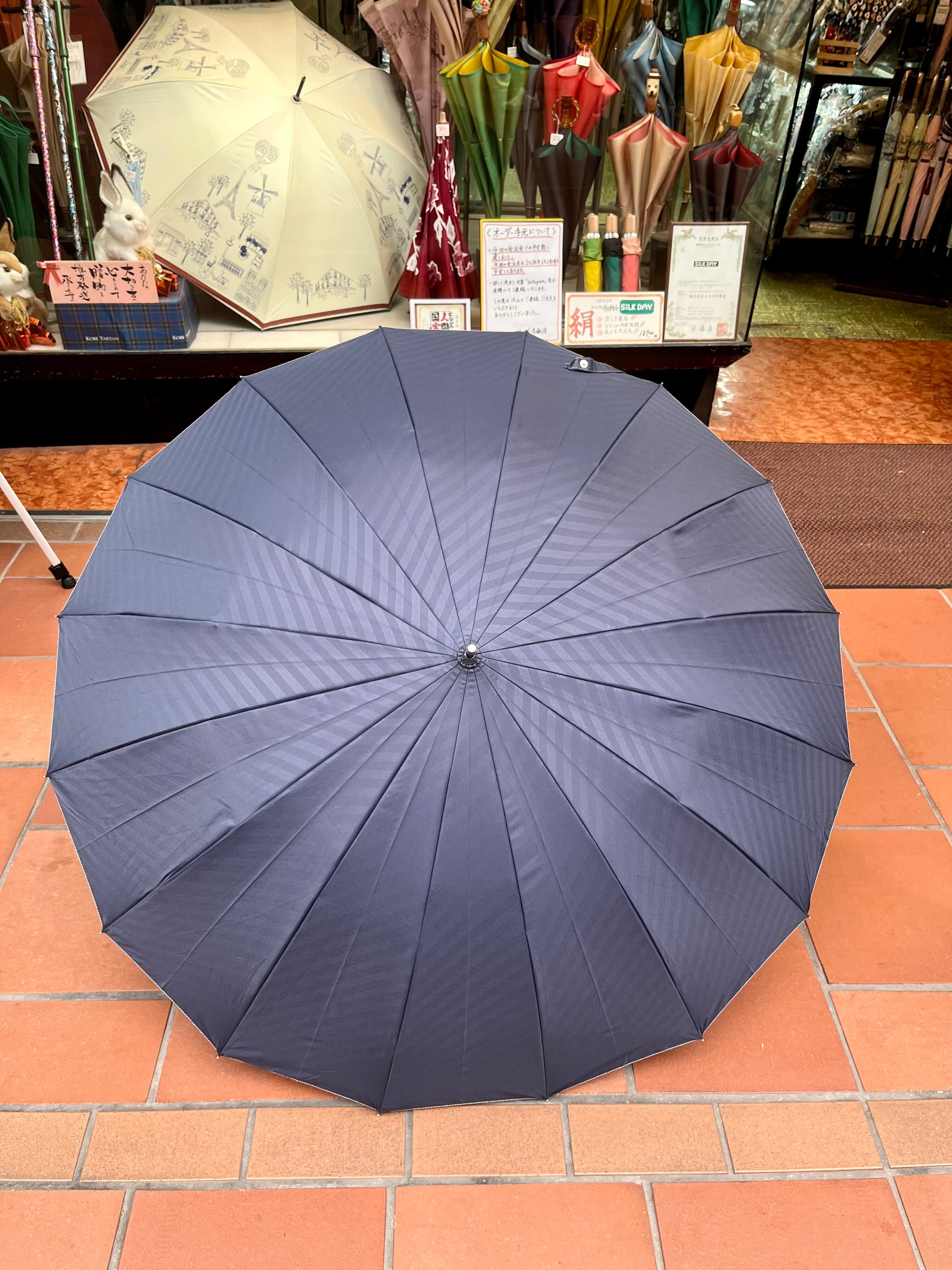 雨傘 【耐風16本骨】 紺 ストライプ 紳士 雨傘 ワンタッチ ジャンプ傘 丈夫 プレゼント ギフト お祝い